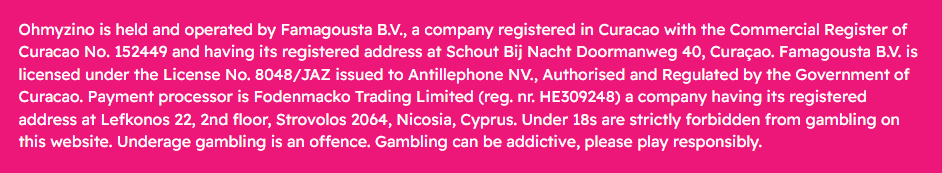Vai Ohmyzino Casino – kylläpä on kummallinen nimi taas keksitty. Tämän Curacaon luomuksen kummallisuus ei tosin lopu pelkkään nimeen, sillä myös lokalisoinnit ovat varsin hullunkuriset. Ensivaikutelma on etenkin ulkoisen olemuksen ja pelivalikoiman suhteen positiivinen, mutta ehdot ovat tiukat monella saralla.