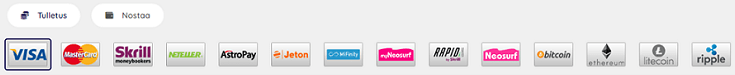 Kryptovaluutoilla tehdyille talletuksille on tarjolla aina 10% käteispalautus 1000€ asti ja viikoittainen 50%/200€ bonus.